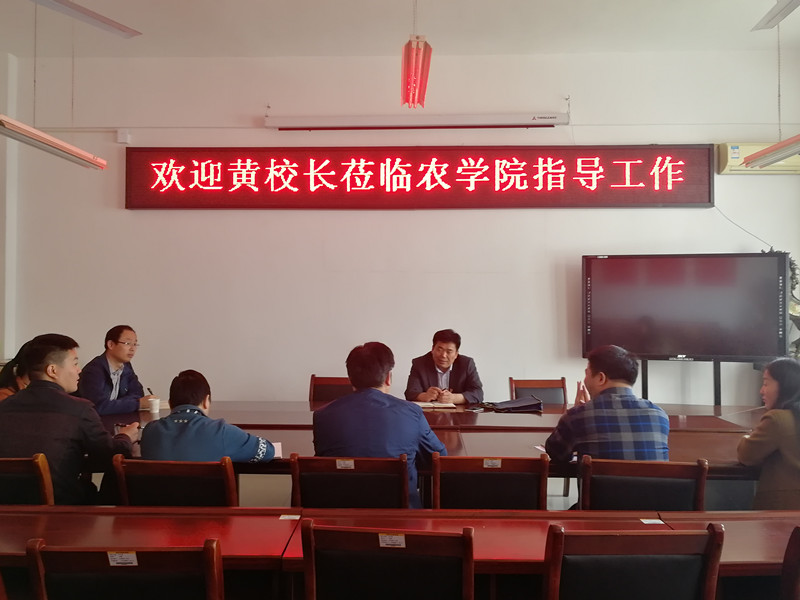 会上农学院院长尹健、党总支书记雷振山分别就农学院的师资队伍建设、专业建设、人才培养、科学研究以及党建工作、思想政治工作等方面进行了汇报。在听取汇报以及与相关老师的交流座谈后,黄校长对农学院所取得的成绩给予了充分的肯定。