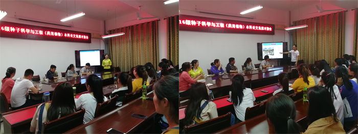 5月4日下午,我院药用植物教研室在2A316召开了2016级种子科学与工程(药用植物)本科毕业论文选题对接会。会议由张艳玲老师主持,尹健院长、张莉博士、药用植物教研室专业教师和16级种子科学与工程(药用植物)专业全体学生参加。