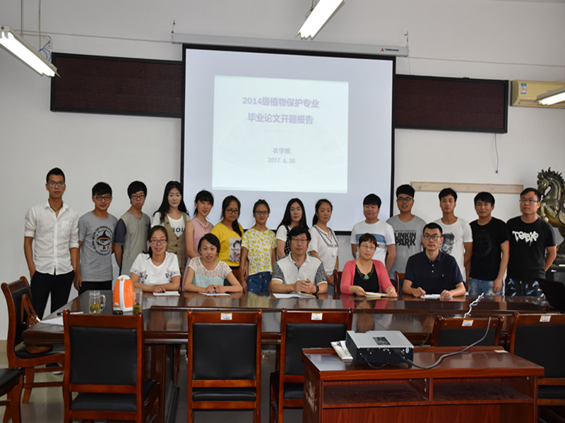 2017年6月30日,农学院召开了2014级植物保护专业本科生学位论文开题报告会。相关指导教师和2014级植物保护专业本科生全部参加了本次报告会。本次开题报告会分为病理组和昆虫组:病理组17人、昆虫组15人,分别在实验楼2A506、2A316进行。