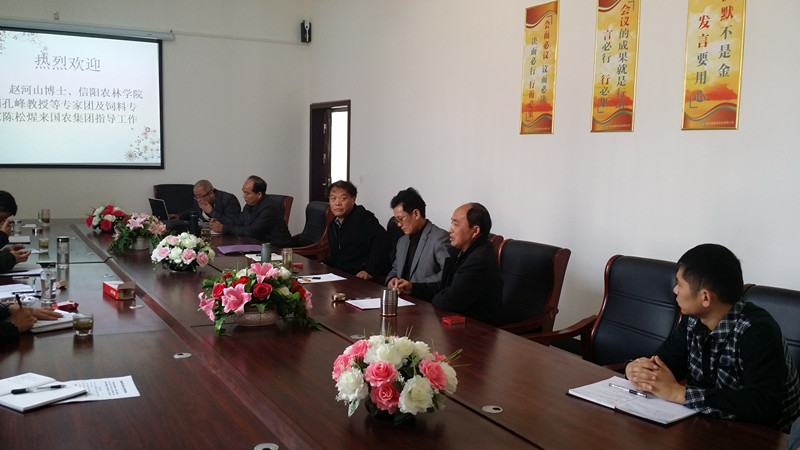 2014年11月16日,我系胡孔峰教授与学校规划办、动科系、水产系教师一行,到光山县国农集团参加国农集团的集团发展战略转型研讨会。