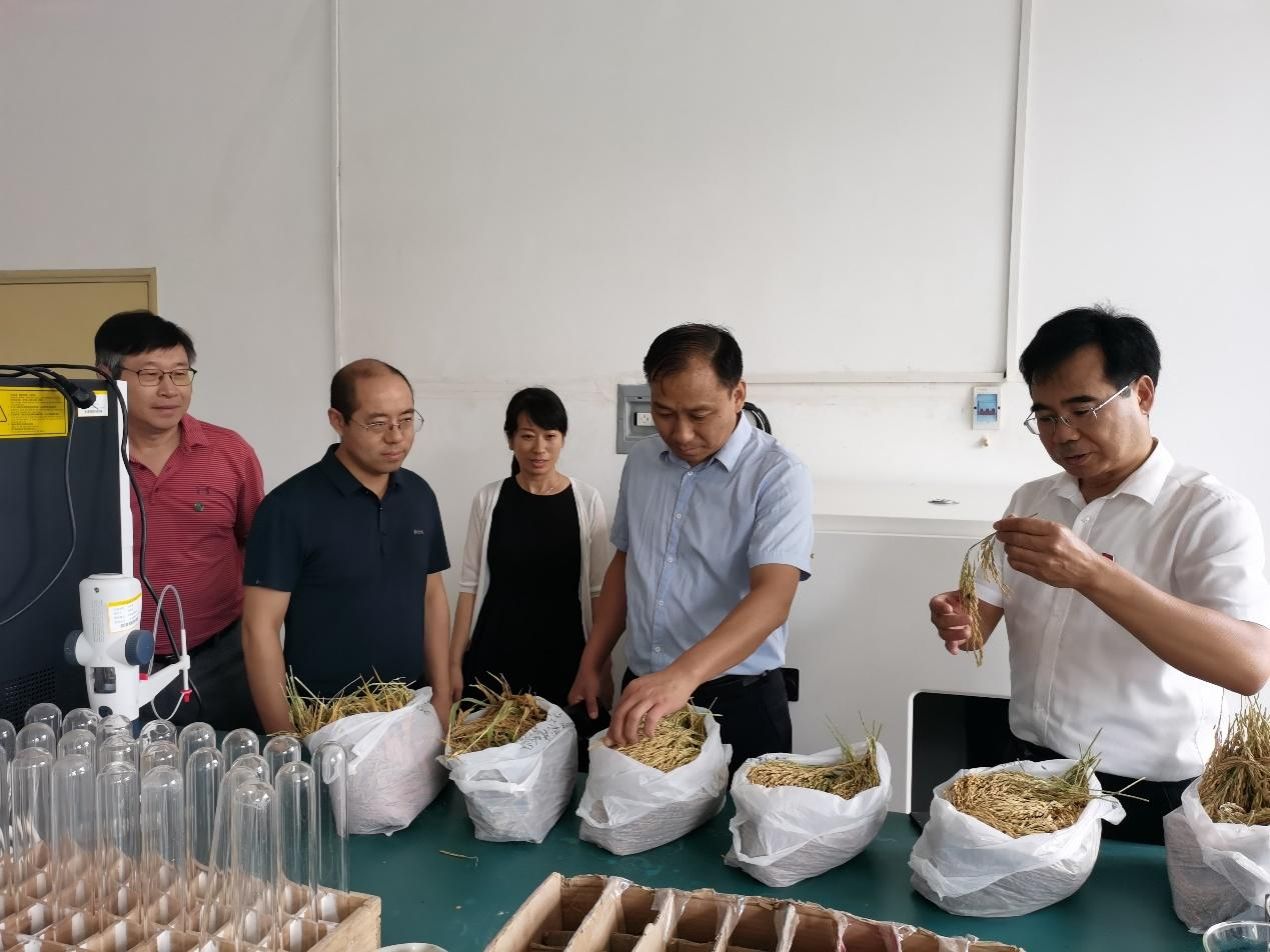 2021年9月18日,信阳市科技局副局长许永,计划管理科科长肖兵等一行3人莅临beat365在线平台官网水稻研究所参观指导工作。