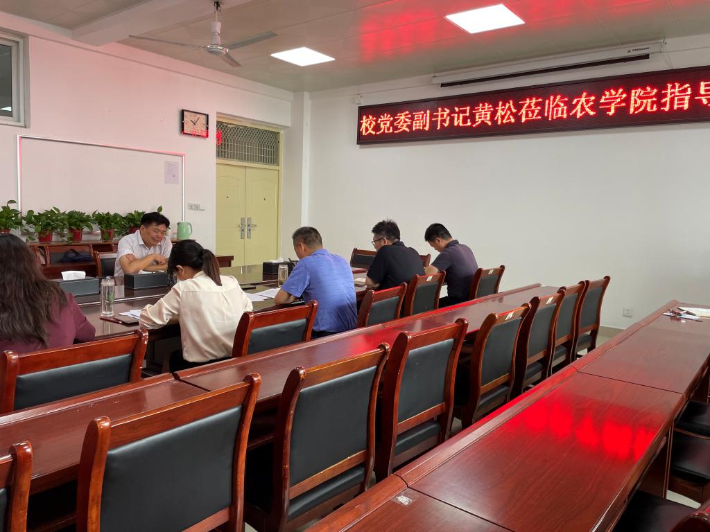 6月1日上午,校党委副书记黄松到农学院调研指导。农学院党总支书记李传保、院长尹健、党总支副书记王付娟、副院长陈利军、董丽平参加调研座谈。