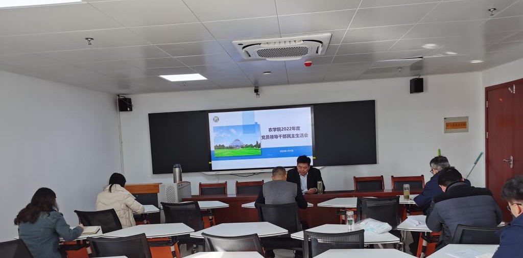 1月7日下午,农学院党总支在学术交流中心520会议室召开农学院2022年民主生活会,会议由农学院党总支书记李传保主持。农学院院长尹健、党总支副书记王付娟、副院长陈利军、董丽平参加会议,校党委副书记黄松到会指导。