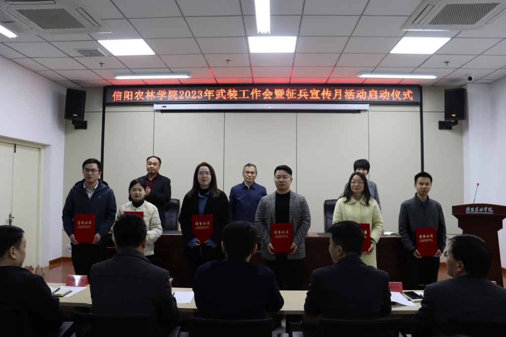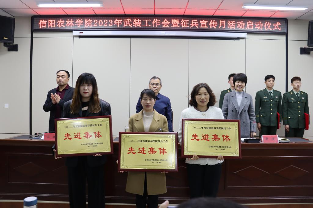 4月24日下午,学校在艺术楼202会议室举行2023年武装工作会议暨征兵宣传月活动启动仪式。会上,表彰了2022年度大学生武装工作先进集体和先进个人。我院荣获“征兵工作先进集体”,学院辅导员信龙飞和陈磊荣获“征兵工作先进个人”,学院党总支副书记王付娟代表学院上台领奖并作交流发言。
