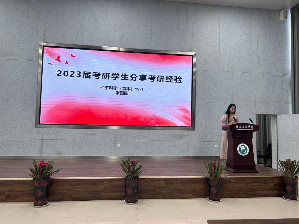 种子科学(普本)19-1班张园园、植物保护(普本)19-1班陈方原作为考研优秀代表依次发言。他们从总结学习方法、择校策略及找好研友等方面分享考研经验,并鼓励学弟学妹们明确目标、积极备考、合理规划复习时间,努力取得优异成绩。植物保护20-2班姜云龙作为2024届考研学生代表发言,他表示已决心考研,脚踏实地,坚持不懈,争取实现精彩人生。郭世保和季新老师作为2019级辅导员代表发言,他们对2023届考研录取的同学表示衷心祝贺,并鼓励2024届考研同学要做好学习规划,在考研征途中辛勤耕耘、踔厉奋发、成就梦想。