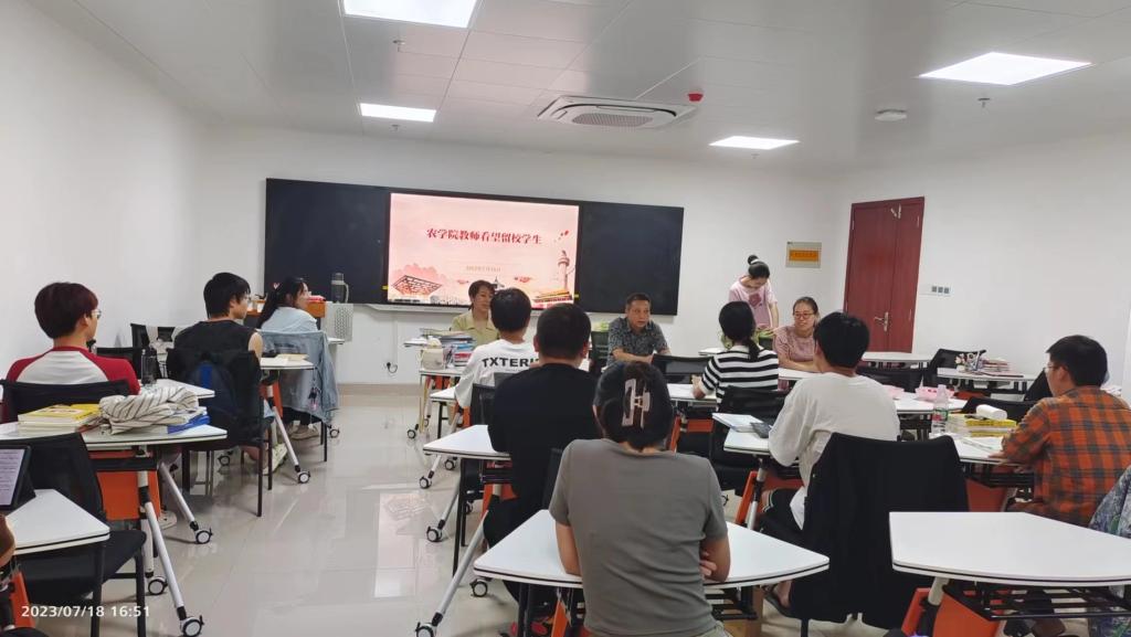 炎炎夏日,骄阳似火。为了了解留校学生的学习和生活情况,7月18日农学院党总支书记李传保,党总支副书记王付娟,以及教师代表来到农学院自习室看望慰问2024届考研留校学生。