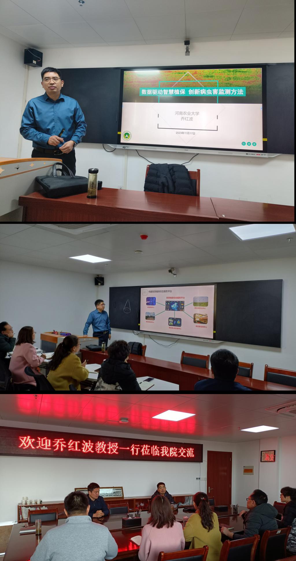 乔教授的研究工作推动了作物病虫害监测的自动化和智能化,报告内容拓宽了参会师生的专业知识和视野。报告结束后,乔教授与植物保护教研室的教师在教学、科研等方面进行了交流,特别在年轻教师的科研项目申报方面给出了专业的意见。(撰稿/张方梅 摄影/耿书宝)