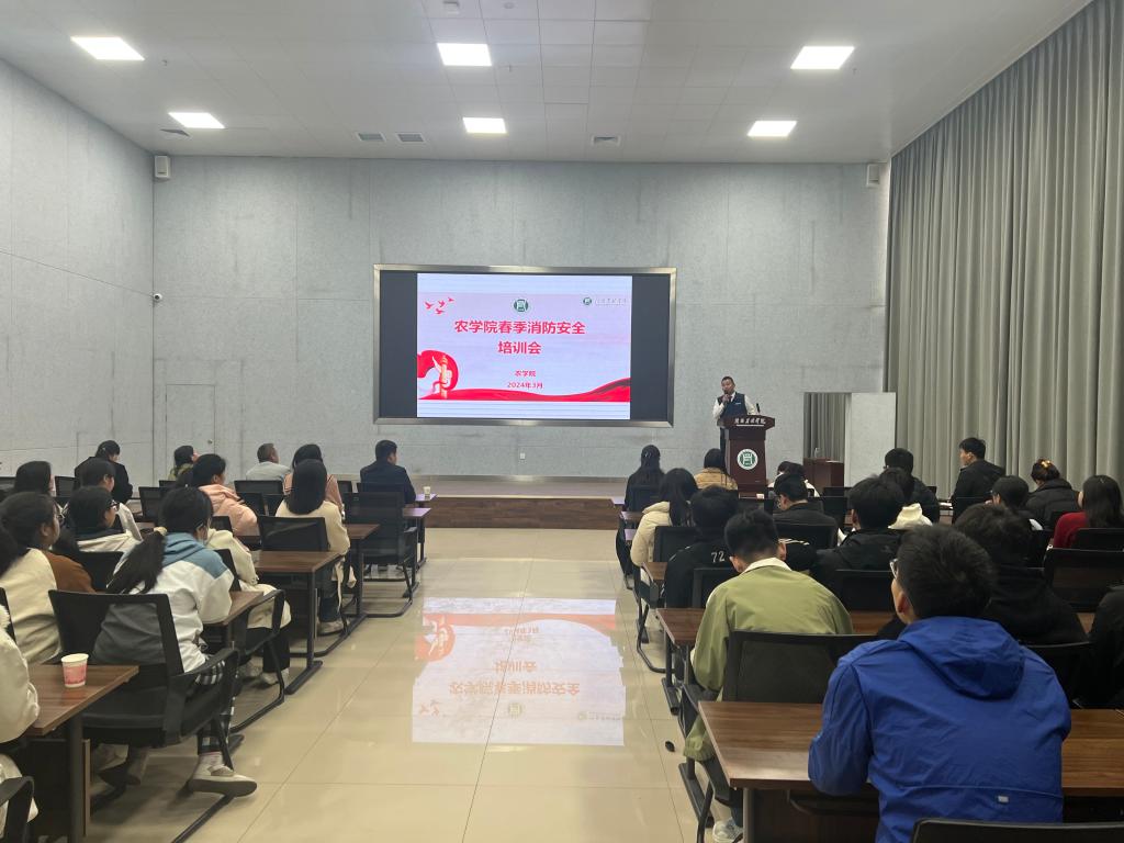 为了不断提高农学院师生消防安全意识,进一步掌握消防安全知识和逃生自救能力。3月12日下午,我院在学术交流中心一楼报告厅举行春季消防安全知识培训会,此次培训特邀请河南拓安消防科普专家詹杰主讲,培训由副院长耿书宝主持,学院主要领导、部分师生代表参加本次活动。