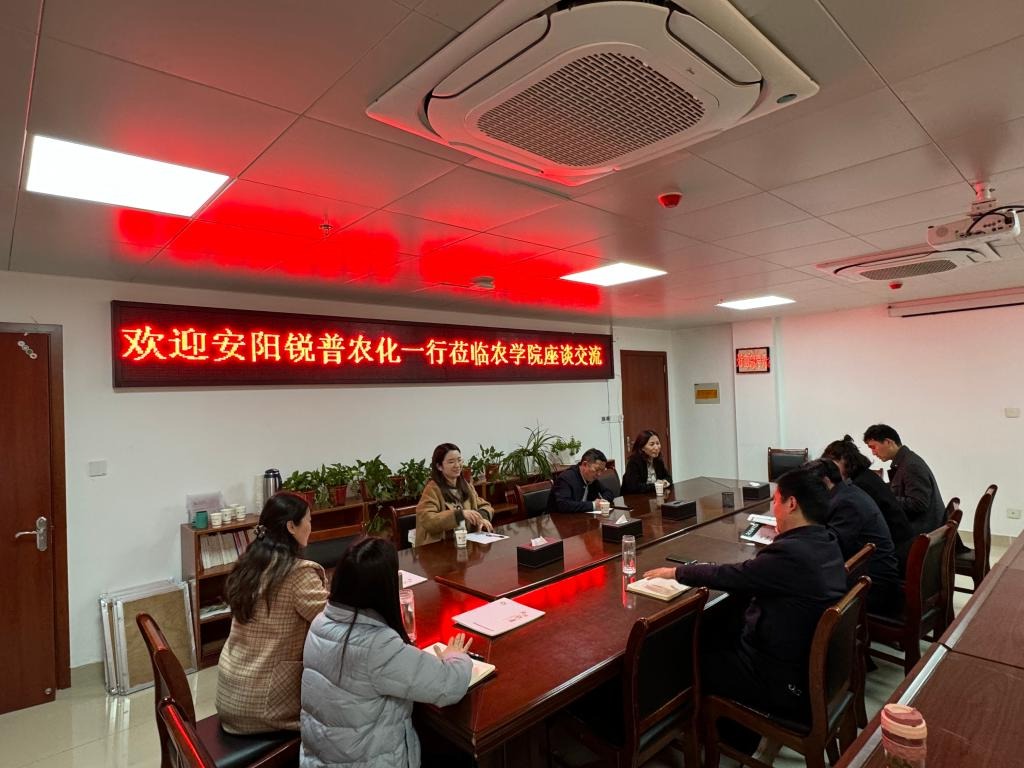 陈利军首先对安阳锐普农化责任有限公司一行的到来表示欢迎,随后从学生情况、师资力量、科研成果、社会服务等方面对学院进行介绍,郭齐就安阳瑞普农化的企业发展历程、企业现状及发展愿景进行了介绍,并就beat365在线平台官网在该公司任职表现进行高度赞扬,提出beat365在线平台官网毕业生勤奋、踏实、专业技能扎实、入职后学习态度积极,进步较快,是理想的农资人才。希望在以后的合作中能够校企合作,共同努力培养更多的优秀人才。随后校企双方在座人员就人才培养、学生就业、服务地方、产教融合等方面进行了深入交流。