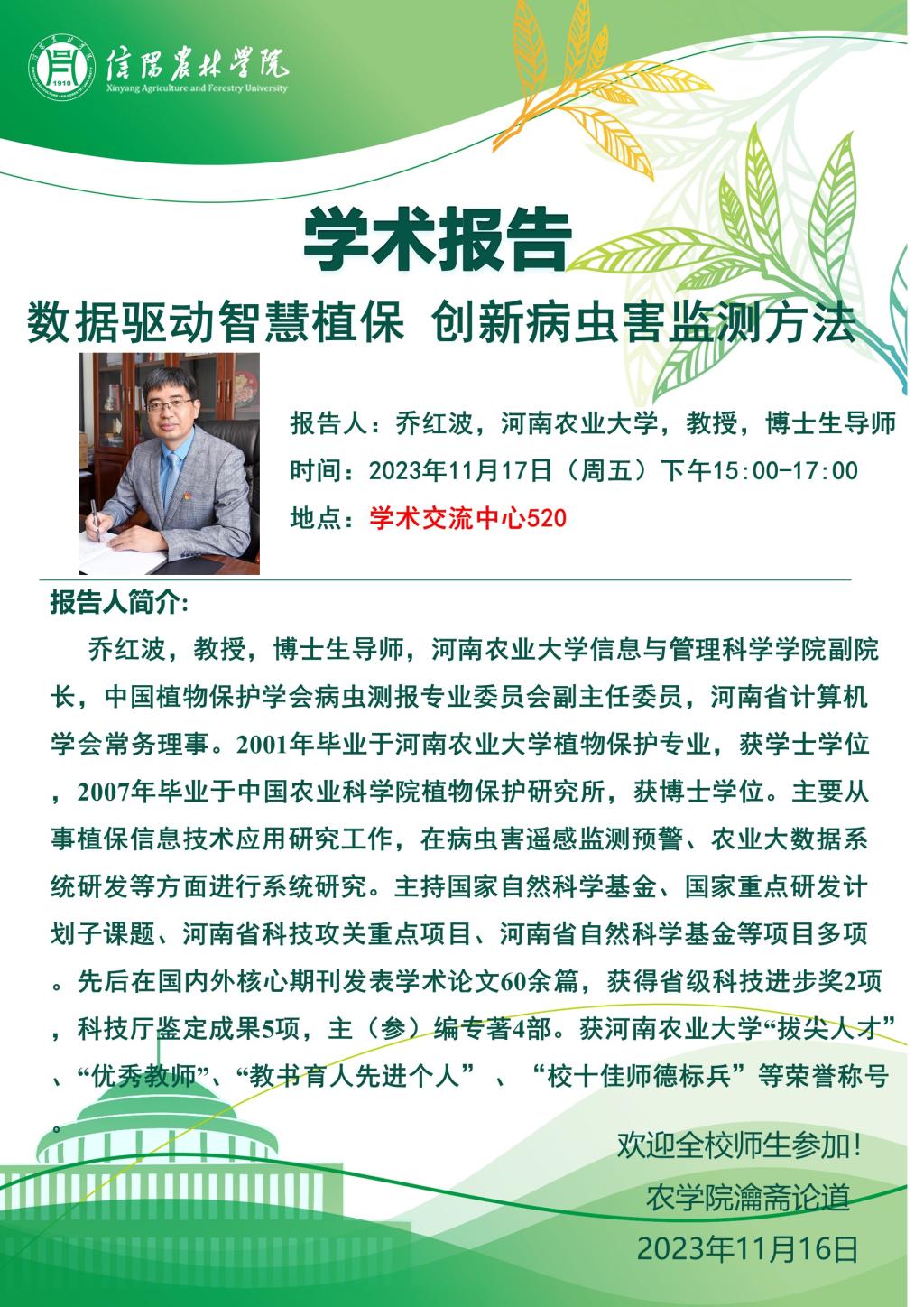 “瀹斋论道”第18期学术报告:数据驱动智慧植保 创新病虫害监测方法