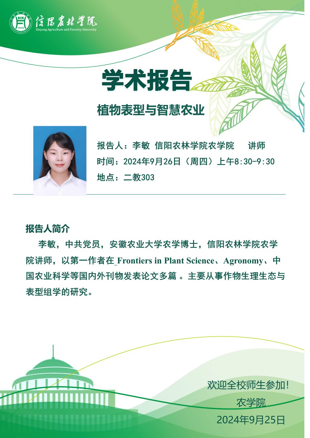 农学院第25期学术报告:植物表型与智慧农业