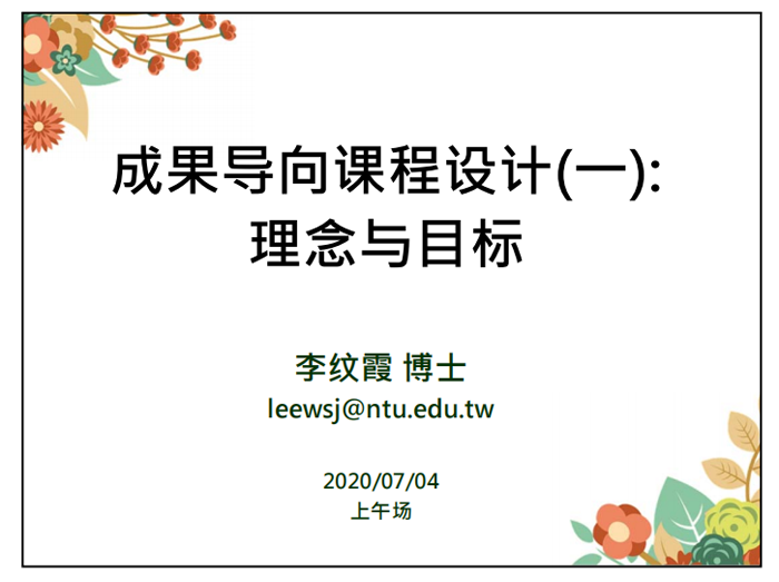 本次培训邀请了武汉轻工大学特聘兼任教授李纹霞、辽宁省教学名师徐林、吉林大学教师教学发展中心副主任金祥雷、华南师范大学网络教育学院任设计总监赖国雄等多位专家名师授课,3位教师认真学习了“成果导向课程设计与评量理念”、“课程评量检视与标量指标设计”、“一流本科专业建设的若干问题”、“一流本科专业内涵与建设路径”、“高等院校专业课“课程思政”开发设计与实施”和“金质教学课件设计与制作实操”等模块和专题的培训,并将培训内容和心得及时与教研室成员分享和讨论。