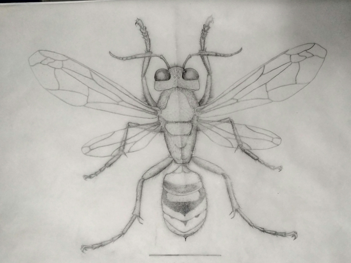 在昆虫绘图环节,潘鹏亮博士选取胡蜂科昆虫做为同学们绘制的对象。通过系统讲解昆虫科学图绘制工具的使用方法、草稿绘制步骤、昆虫各部位比例把握、细节完善以及初级绘图者易犯错误等,使同学们初步掌握昆虫科学图绘制要领。潘博士按照绘制步骤,陪伴同学们一起绘制,并及时指导同学们的疑惑。该环节充分锻炼了学生们细心观察昆虫标本细节的能力和手脑联动能力。