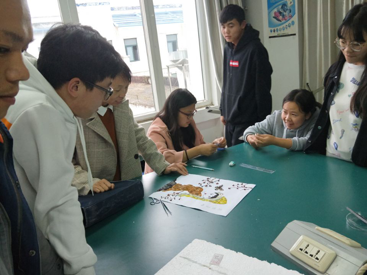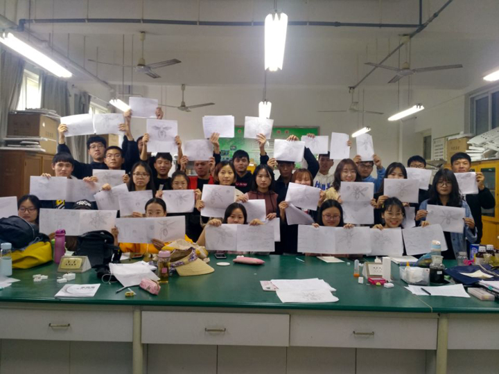 在昆虫工艺品制作环节,陈俊华副教授充分利用平时实验实习实训用过的昆虫残翅,拼接成美妙的图案。该环节充分培养学生的创新能力、审美能力和实践操作能力。