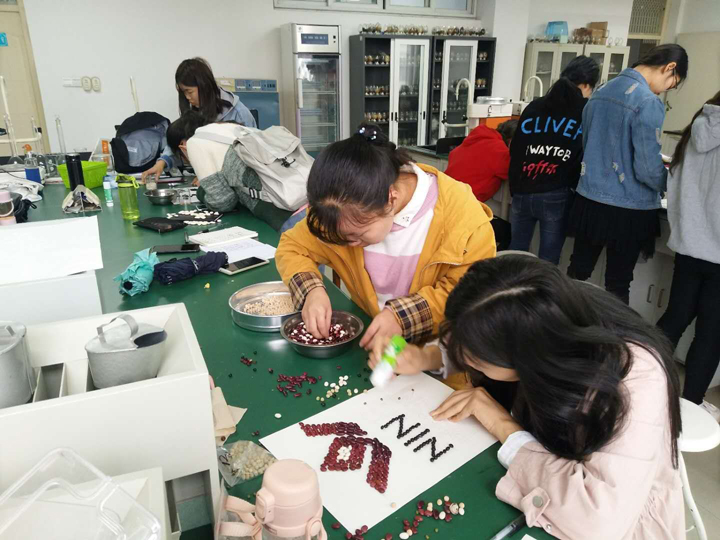 实训开始,董丽平老师介绍了本次实训的总体安排,并且给大家讲解了实训的注意事项,同学们分组后在指导老师的带领下,进行了豆类种子深加工及艺术鉴赏的实训,同学们做出了很多有创意的豆类种子作品;卫云飞老师对同学们进行了安全教育、考种技能培训等内容;王国君老师给同学们讲授了无人机在农业生产中的应用,并进行了无人机模拟操作培训;楚宗丽老师带领同学们学习并操作了小麦组培苗的移栽驯化和塑料大棚的组装;董丽平和李淑梅老师带领同学们进行了种子标本的整理及实验田的整地工作;季新博士在二教307进行了题为《CRISPR/Cas9系统基因编辑理论及实战》的专题讲座,拓展了同学们的知识面,使学生对分子生物学的前沿研究有了进一步认识。