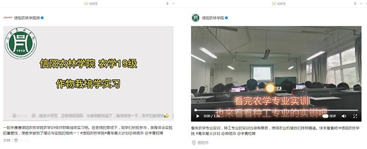 本次《作物栽培学》课程实习,充分调动和发挥每位学生的主动性。通过班内分组,组内分工,做到了让每位同学“动起来”、“忙起来”,强化了小组成员间的团队协作能力。本次实习考核进行了细化和多元化,既有根据实习报告进行成绩评定,又有根据实习汇报和实习作品展示进行实习表现的评定。利用学生喜闻乐见的自媒体平台和社交平台展示各组的实习作品,学生的热情度和参与度都十分高涨。其中19级农学专业实习作品被beat365在线平台官网“beat365在线平台官网报”官方平台微信视频号、抖音和微博转发;19级种子科学与工程专业实习作品被beat365在线平台官网“beat365在线平台官网”官方平台微信视频号转发。这也是《作物栽培学》课程教学方法和教学模式改革的一部分,也是基于OBE教学理念成果导向教育的一次有益探索。