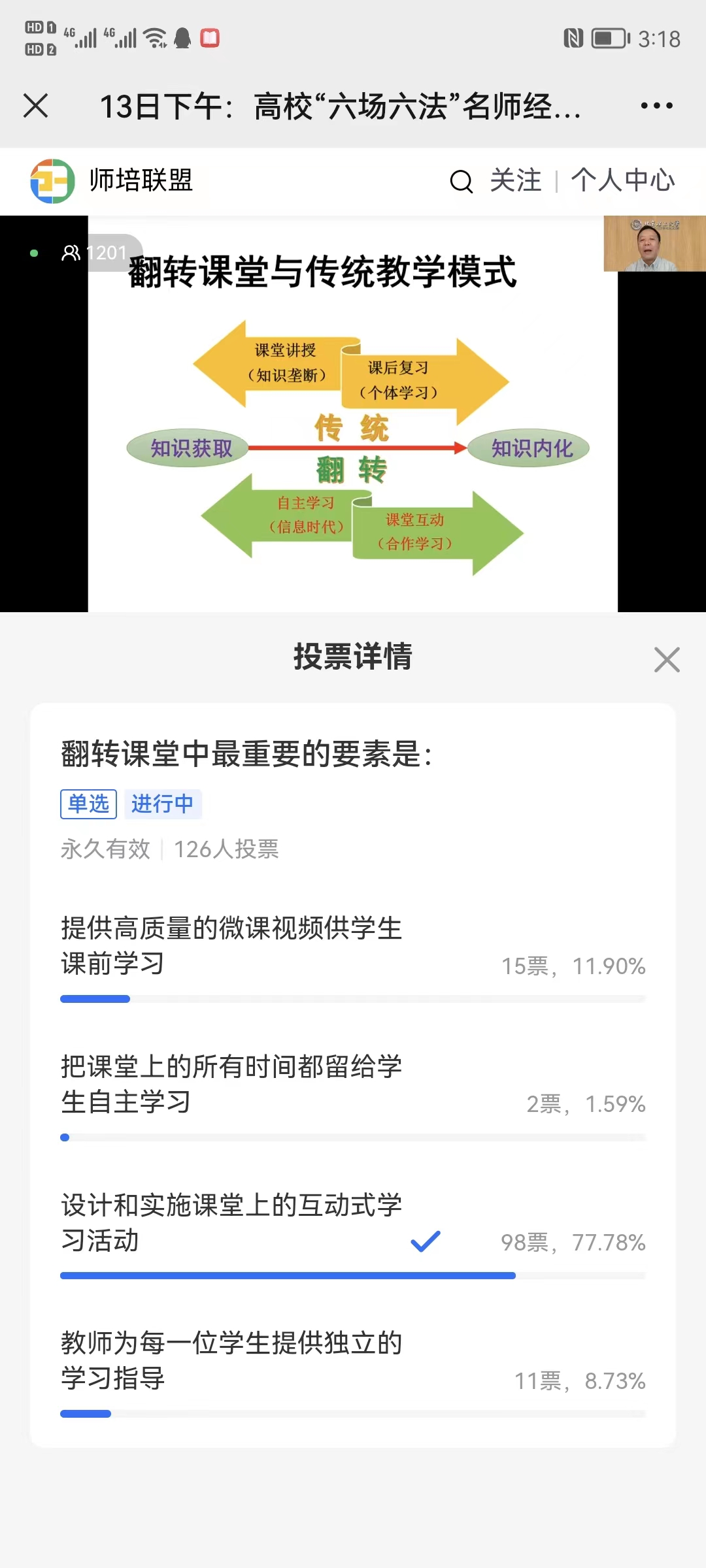 此次在线培训会议涵盖六个主题,分别为:互动式讲授法与课堂讨论、基于布鲁姆教育目标分类学的参与式教学法、五星教学法的模式与应用、大学课堂案例教学法的设计与应用、如何理解和实施“同伴教学法”及项目式教学的设计与实施。我院专任教师积极参加培训,认真撰写培训学习心得,获益匪浅。