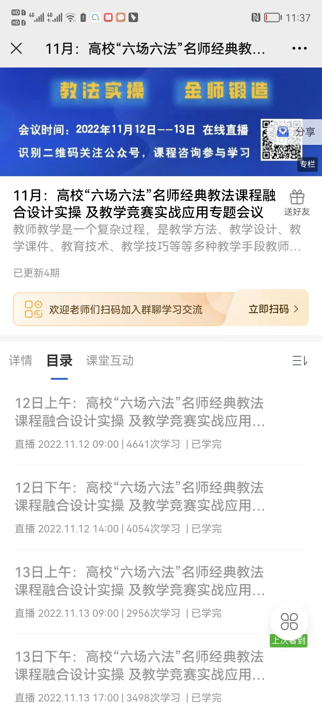2022年11月12日至13日,我院专任教师参加了校教师发展中心组织的高校“六场六法”名师经典教法课程融合设计实操及教学竞赛实战应用专题在线培训会议。本次培训以直播专题讲座+案例分享交流+在线答疑指导+回放巩固学习的形式开展,以进一步提升高校青年教师及骨干教师教学实操能力,帮助广大高校教师更好地理解掌握教学方法与课程的有效融合应用和课堂操控要点以及加强教师实施应用技巧。