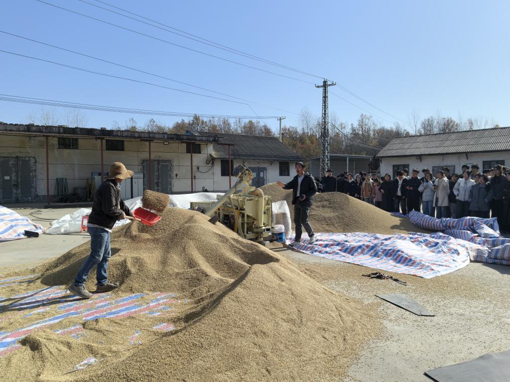 在穗源种业农科专业示范性校外实践教学基地(信阳穗源种业有限责任公司),总经理赵子明带领师生聚焦农业“芯片”的锻造过程,亲眼目睹从田间收获的原始种子,经过风筛清选机、比重精选机等多道工序,去除杂质、秕粒与破损粒,最终成为颗粒均匀、纯度净度高、活力有保障的商品种子的全过程。技术人员现场讲解了各环节的技术参数控制要点与品质检验标准,使同学们对种子“精加工”的内涵有了具象认识。