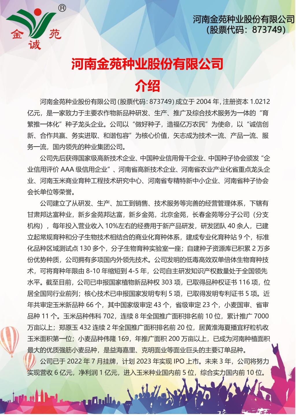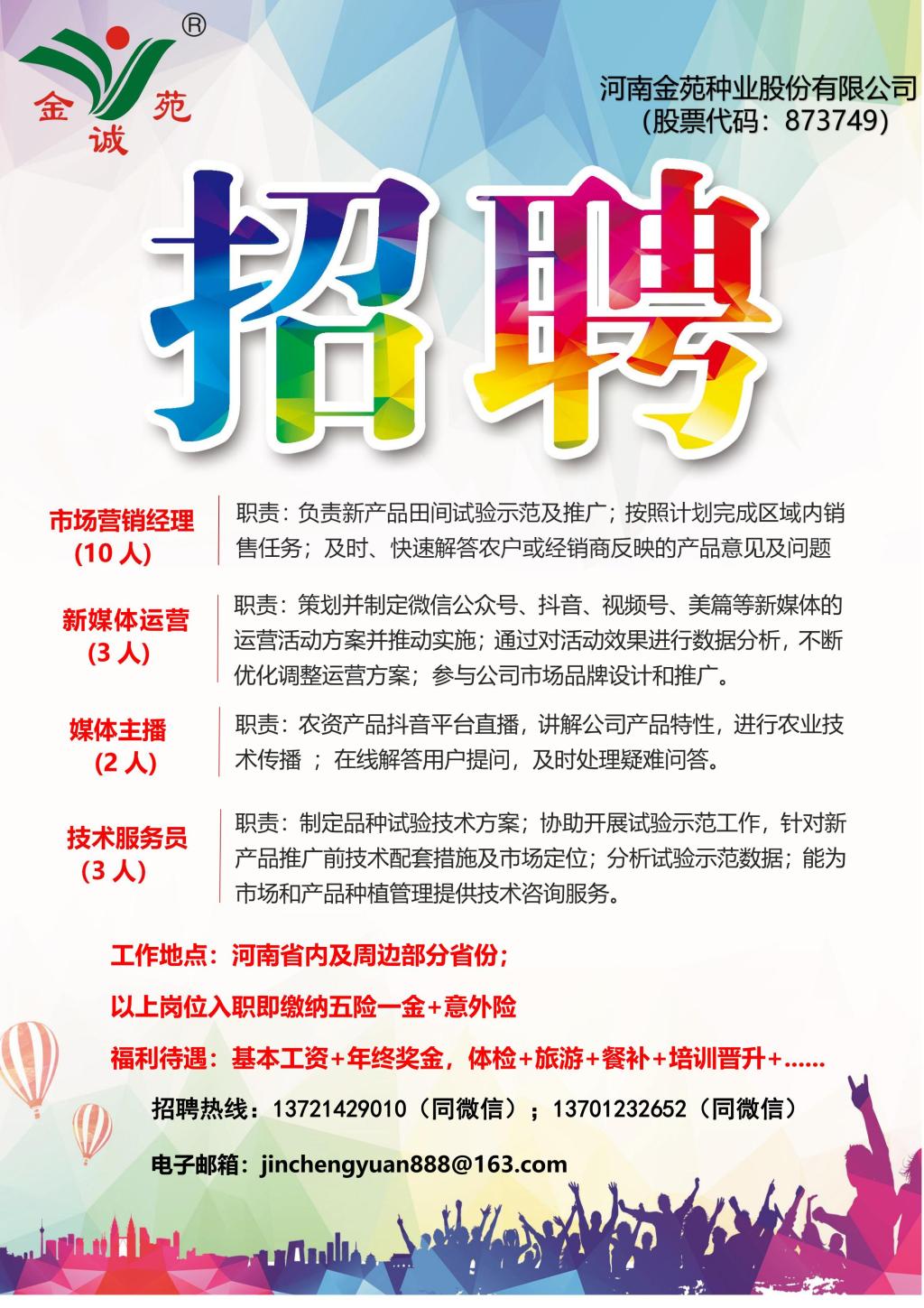 河南金苑种业股份有限公司2023年校园招聘简章