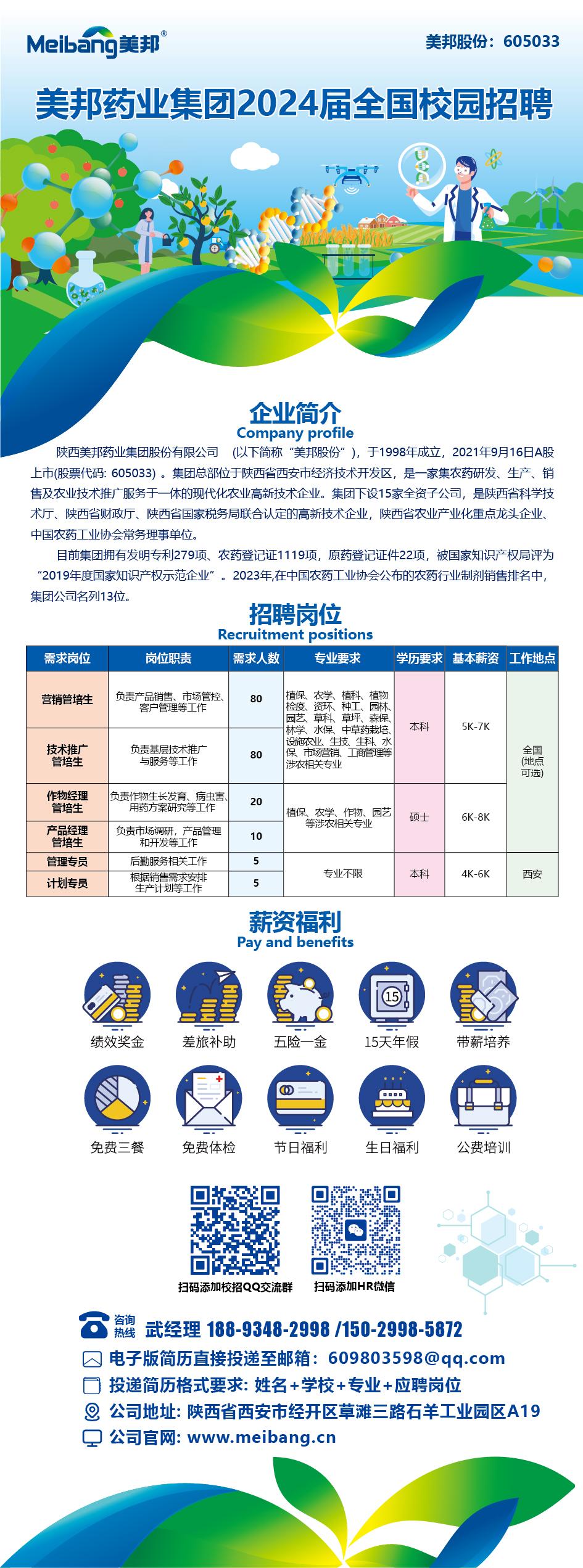 陕西美邦药业集团股份有限公司2024届秋期校园招聘