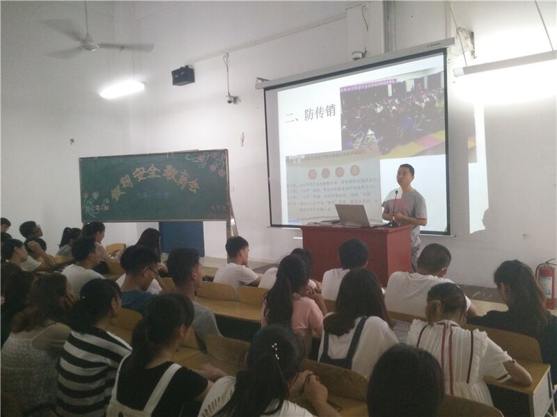 会上,首先杨林老师叮嘱同学们,快要考试了,要认真复习,认真对待考试,还提醒了一些考试的注意事项,带好自己的身份证、学生证等,同学们纷纷表示会牢记于心。然后杨老师围绕以下几点告诉同学们在即将到来的暑假里一定要有安全防范意识:①防盗、防骗,②防传销,③防火,④防交通事故,⑤增强家教防范意识,⑥增强网络安全意识,⑦注意饮食安全,⑧防溺水。围绕着这八点杨老师对同学们进行了细致的讲解,并一一为同学们举了防范不当的实例,同学们也都了解到了有些防范不当的确实会造成事故,有时甚至会威胁到生命,杨林老师演讲完毕,台下响起了雷鸣般的掌声。随后刘书含老师提醒同学们不要做“低头族”,并举了一个走路也看手机不小心掉进河里淹死的例子,同学们表示以后一定会注意这个问题,并且感谢老师的提醒。在讲座的最后,刘书含老师特别提醒女生们在暑假一定要注意各个方面的安全,保护好自己,不要坐黑车等等,讲座在一片掌声中结束。
