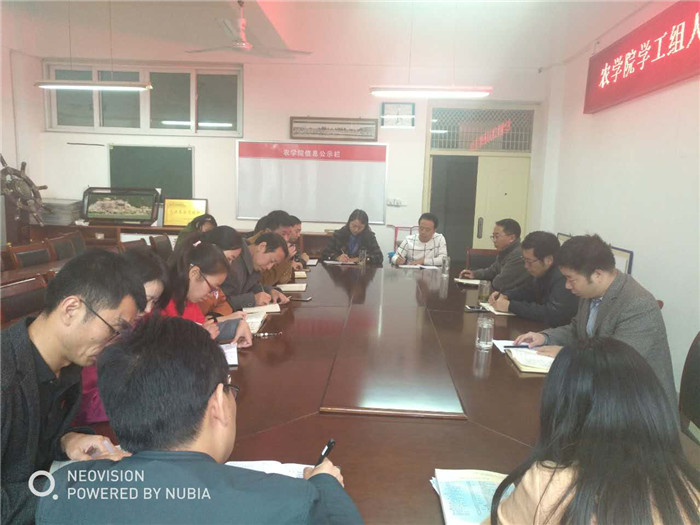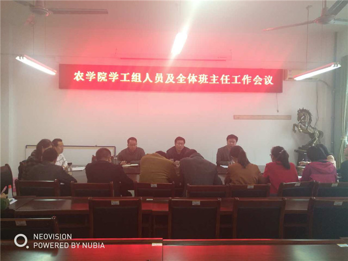 2017年10月12日下午,我院在2A316召开学工组人员及全体班主任工作会议。农学院院长尹健、党总支副书记雷振山、副院长肖同建以及全体班主任和学工组成员参加了此次会议,会议由雷书记主持。
