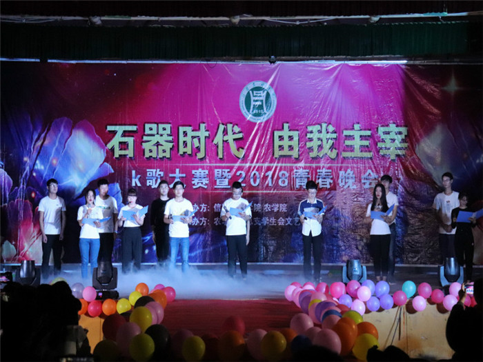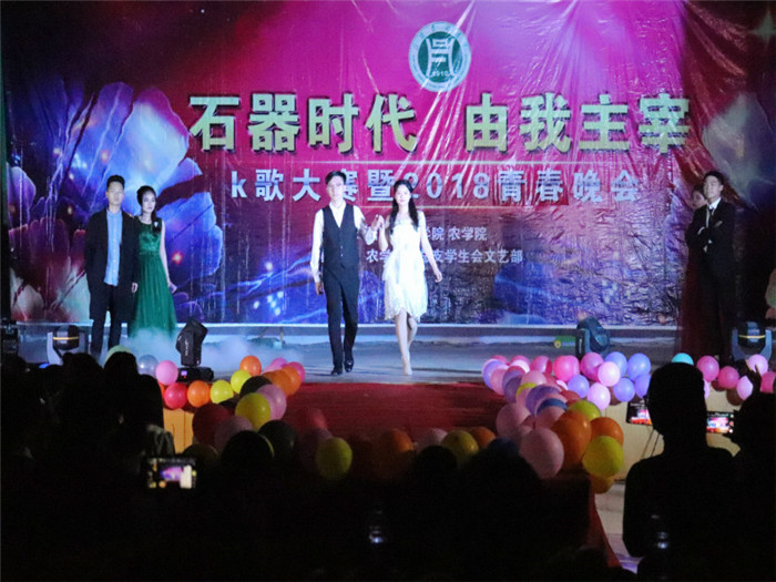 2018年3月30日晚,农学院在大学生活动中心(学校一餐三楼)举办以“石器时代,由我主宰”为主题的K歌大赛暨青春晚会。校团委书记王鹏老师、校团委张苗苗老师、教务处刘陆民老师、外国语学院陆岱宝老师以及我院刘合满、王付娟、金明慧、刘书含等老师出席本次活动。我院与兄弟院系大一学生共同欣赏了本次视听盛宴。