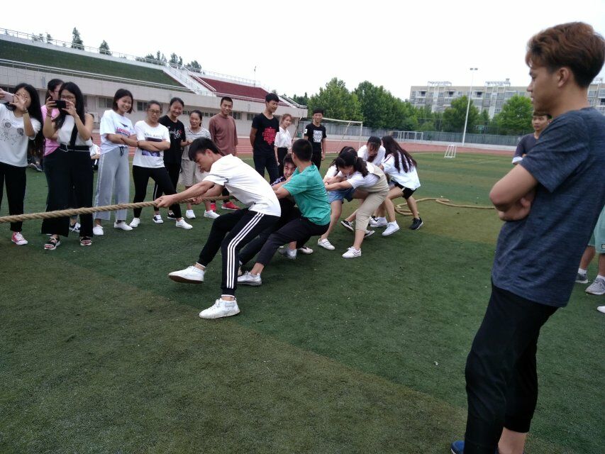 在结束了两项比赛之后,拔河比赛进入决赛,听哨声起,参赛同学已然做好准备,用尽全力向后冲刺,双方一度不分伯仲,比赛在裁判的哨声中结束,由体育部参赛的同学获得第一名。