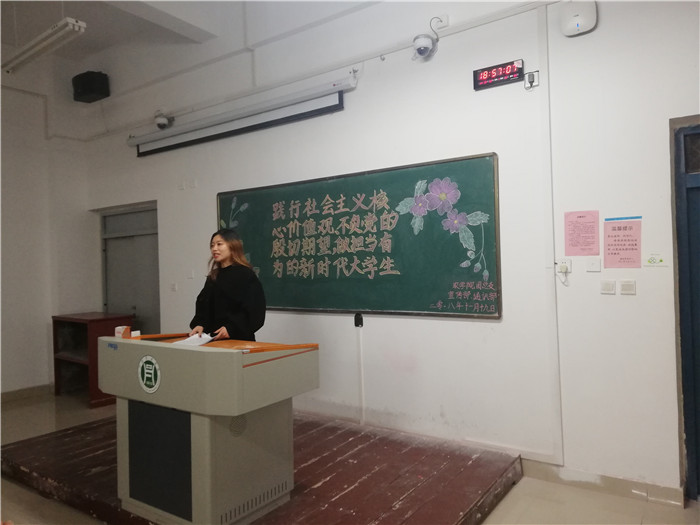 2018年11月19日晚,我院在二教305举行了“践行社会主义核心价值观,不负党的殷切期望,做担当有为的新时代大学生”的活动。通讯部和宣传部17级同学闫雅倩,吴俊峰,张国慧,苏梦可,王明明,贾贤慧,蔡世敏,以及18级各班班长,团支书,宣传委员和部分同学参加了本次活动。