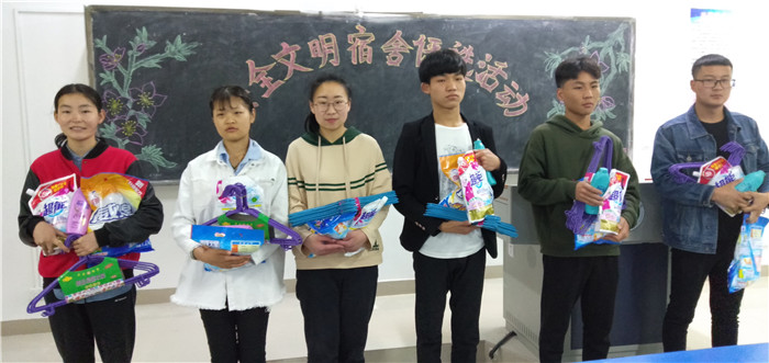 活动开始,武浩老师为获得安全文明称号的宿舍颁发奖品。武老师表示希望同学们可以胜不骄败不馁,再接再厉,养成更好的卫生习惯,营造更好的宿舍氛围。武老师还强调安全文明宿舍的评选一方面是为了表扬优秀宿舍,另一方面更是为了让大家以安全文明宿舍为榜样。一个良好的宿舍环境不仅可以影响同学们的心情,而且也可以增加舒适度。