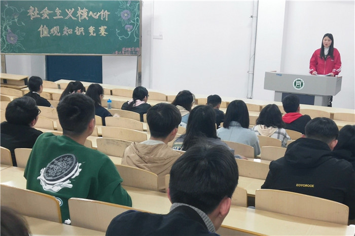 为弘扬社会主义核心价值观,2019年4月28日晚上我院学习部在二教304组织以“社会主义核心价值观”为主题的知识竞赛。学习部部长吴曼曼同学带领学习部干事监督测试,18级各班同学参加。
