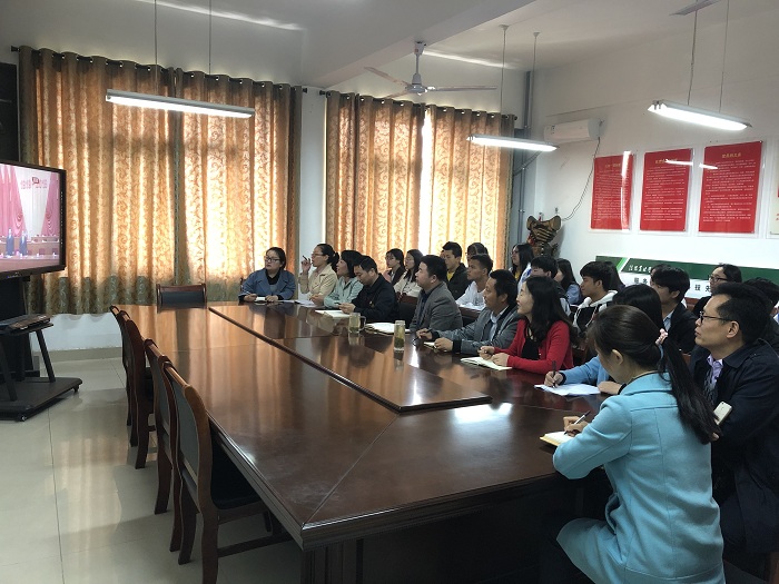 4月30日上午,农学院在2A316组织观看“纪念五四运动100周年大会”直播活动,院领导班子成员、没有课的教师及部分学生代表参加活动。