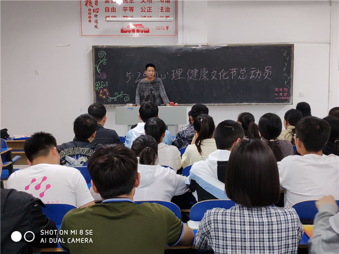 2019年5月15日我院心理部于一教A103举办了5.25心理健康文化节总动员。我院心理部同学和心理委员参加了此次活动。