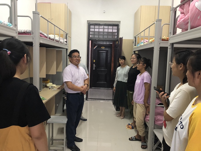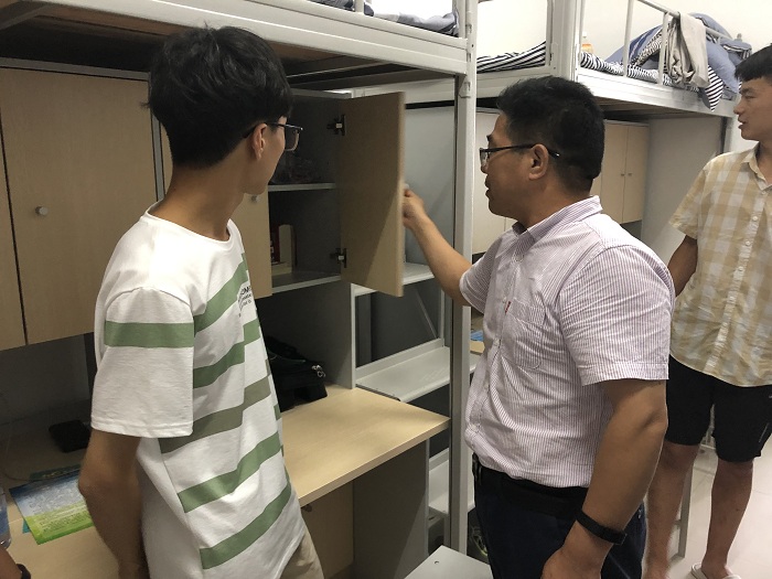 每到一间宿舍,胡书记都和新生们亲切交谈,询问大家是否适应新环境。他提醒大家:一要提高警惕,保管好个人财产,防止上当受骗;二要注意安全,宿舍内不使用大功率电器;三要和室友多沟通交流,彼此包容,互帮互助;四要常和父母保持联系,汇报一下最新生活状态;五要克服困难,尽快适应新环境,遇到不能解决的问题,要和辅导员及时沟通。