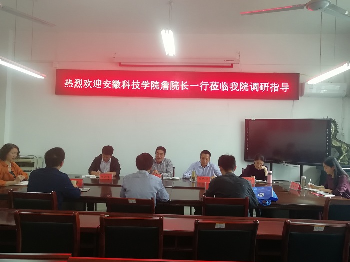 安徽科技学院是一所办学历史悠久、文化底蕴深厚、多学科协调发展的省属本科院校,安徽科技学院农学院是安徽科技学院办学历史最长的学院之一。在长期的办学过程中,安徽科技学院农学院已逐步形成了自己的专业办学特色,为社会培养了一大批优秀的应用型人才,该院的办学经验很值得我们借鉴。2017年,我院就曾派教师赴该院进行调研学习,此次詹秋文院长一行的到来,必将对我们两个学院的进一步交流、合作起到很好的促进作用。(农学院)