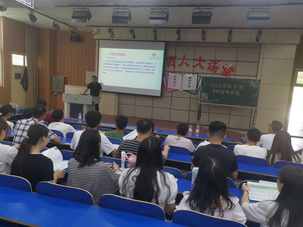 宣讲会上,方院长简述了长江大学的基本校情,对长江大学农学院研究生教育概况进行了介绍,包括专业介绍、师资力量、实验条件、培养模式、奖助体系、助研津贴等内容。向同学们展现了该院以往取得的成绩和近一年来的发展。方院长表示,同学们在选择考研学校时,要根据自己的学术兴趣,选择自己适合的学校与专业,欢迎大家积极报考长江大学农学院研究生,也为同学们考研加油鼓劲,预祝大家顺利考上理想学府。