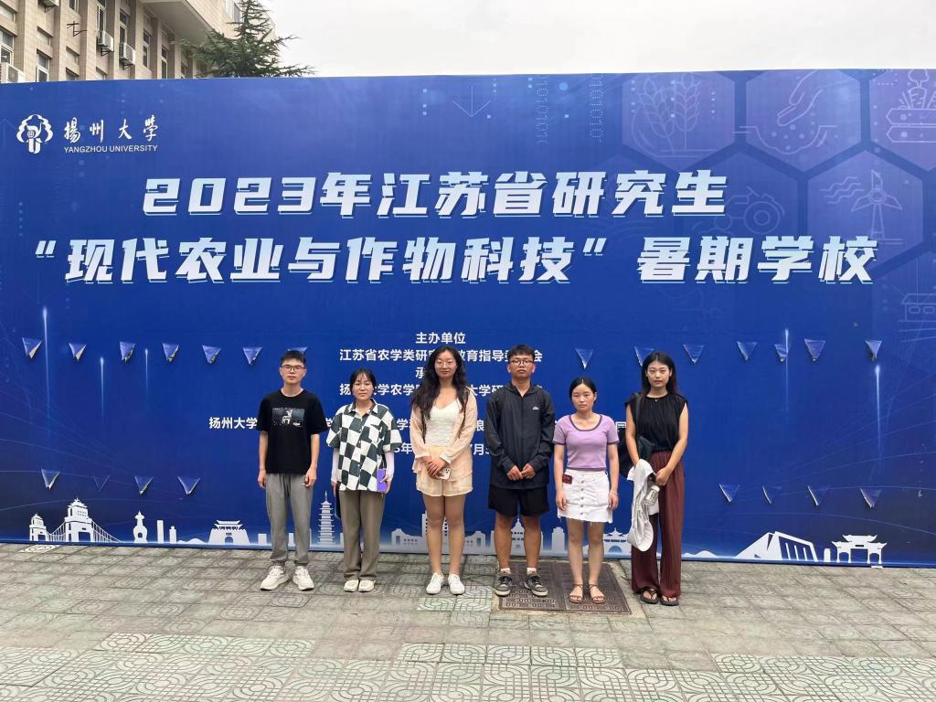 2023年7月25日至31日,我院20级种子科学与工程专业学生李飞宏,20级农学专业崔晶晶、吕朝阳,21级农学专业邢嘉潇、张俊淼和22级农学专业师书杰,经选拔参加了由江苏省农学类研究生教育指导委员会主办、扬州大学承办的2023年江苏省研究生“现代农业与作物科技”暑期学校培训,并顺利获得结业证书。