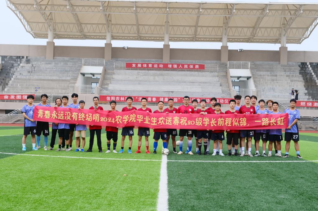 又到了一年毕业季,同学们怀着复杂的心情送别2024届毕业生。为了表达对毕业生的美好祝福,感激大家对农学院足球队做出的贡献。2024年5月26日下午,农学院在新足球场举行了送毕业生友谊赛,本次比赛邀请了我院周洲教授、王国君副教授出席,球队2024届毕业生以及低年级学生参加本次活动。