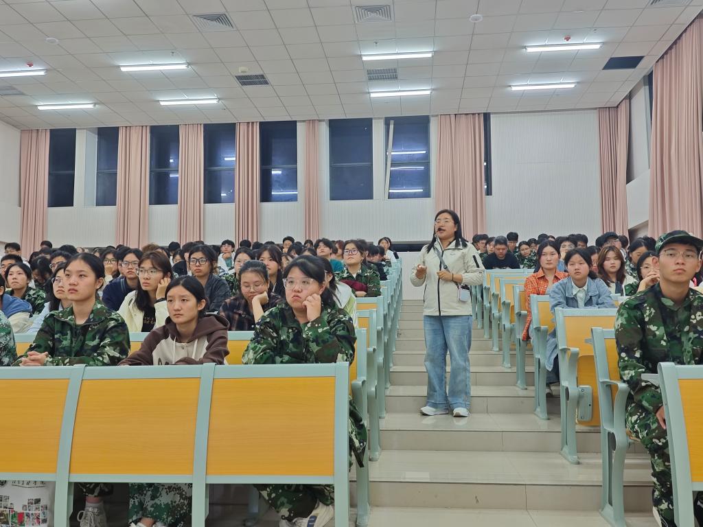 杨春玲通过图文并茂的PPT,围绕“奖、助、贷、勤、补、减、绿色通道、入伍补偿”多位一体的资助政策体系,进行了系统梳理与细致讲解。讲解过程中,她特别提醒新生要增强防范意识,警惕以“兼职”或“助学”为名的网络诈骗,并强调要通过学校及学院官方渠道获取信息,切实保护个人财产与信息安全。