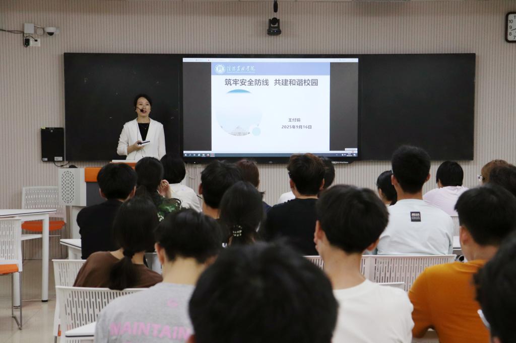 为增强新生安全意识,营造安全和谐的校园环境,9月16日,我院党委副书记王付娟以“筑牢安全防线,共建和谐校园”为主题,为2025级新生开展安全教育专题讲座。