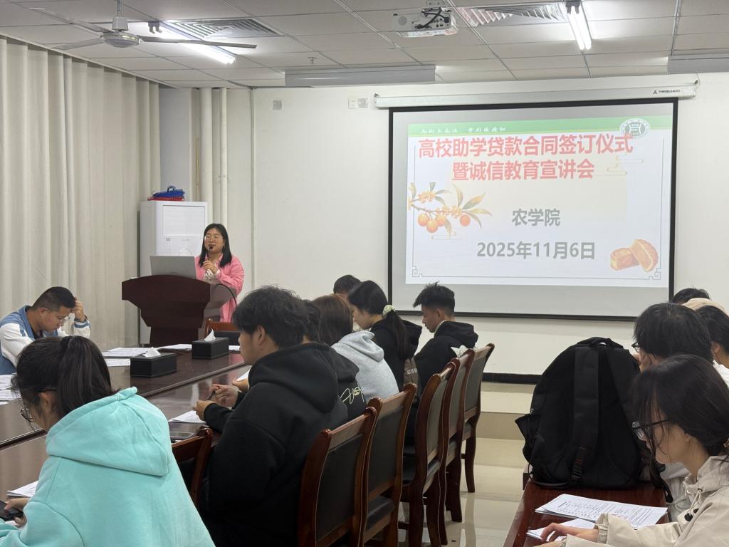 为全面落实国家资助政策,切实帮助家庭经济困难学生无忧入学、安心求学,同时强化学生的诚信意识与责任担当,11月6日晚,我院在3A105举行了高校助学贷款合同签字仪式,学院老师杨春玲、杨帆以及2025年申请高校助学贷款的55名学生参加了本次活动。