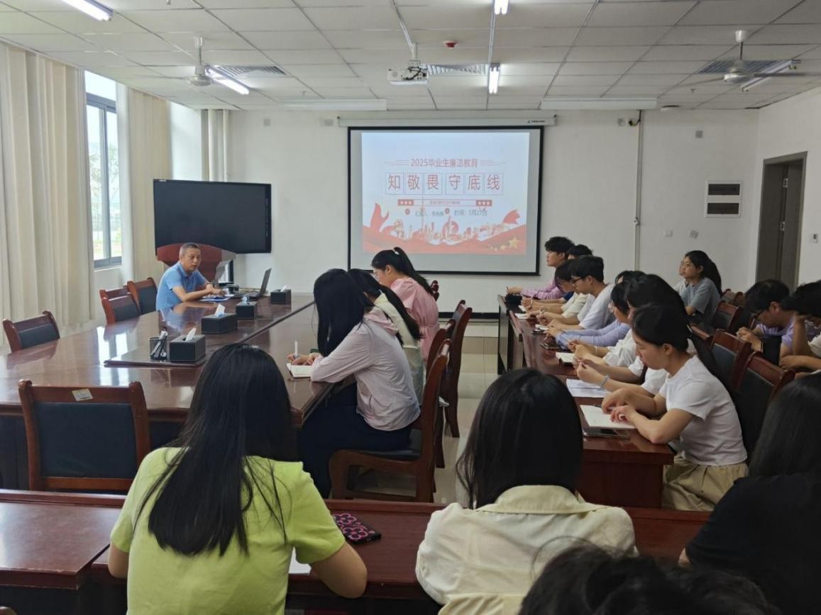 李传保以“知敬畏、存戒惧、守底线、做表率”为主题,用大量贴近生活的案例分析,告诫各位毕业生党员要认清全面从严治党的新形势,掌握反腐标本兼治的新举措,落实党纪学习教育的新要求,展示党员廉洁担当新形象。最后,李传保深情寄语2025届毕业生,希望同学们未来始终保持为民务实清廉的政治本色,正确处理公私、义利、是非、情法、亲清、俭奢、苦乐、得失的关系,勉励同学们在今后的工作中自觉遵守党纪党规,严以律己、忠诚履职,充分发挥党员先锋模范作用,不断提升自我、完善自我,为农业农村现代化发展贡献力量。(撰稿/崔雪蕊  摄影/袁钰洲 徐媛哲)