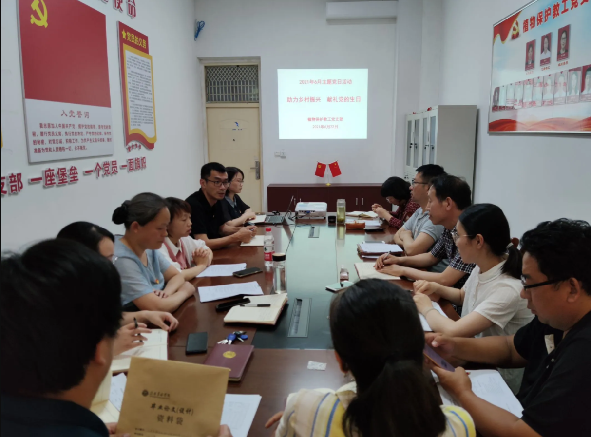 为庆祝中国共产党建党100周年,坚定理想信念,助力乡村振兴,6月22日下午植物保护教工党支部在2A204组织开展了“助力乡村振兴,献礼党的生日”为主题的党日活动。活动由支部书记乔利主持,支部全体党员同志参加。