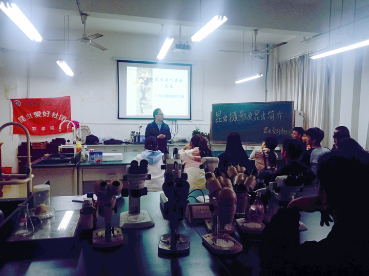 2019年10月27日,在农业昆虫实验室2A404,植物保护教研室潘鹏亮老师为我院昆虫爱好者社团新生开展主题为“昆虫摄影及昆虫知识简介”的第二课堂活动。