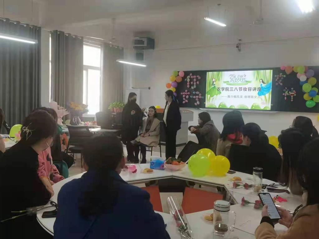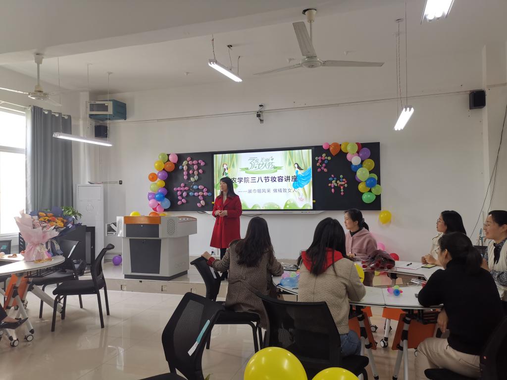 3月4日下午,为庆祝“三八”妇女节,塑造女教职工职场形象、提升个人魅力,激发女教职工的工作热情,农学院分工会在实验楼2B409智慧教室开展“展巾帼风采,做精致女人”妆容讲座。