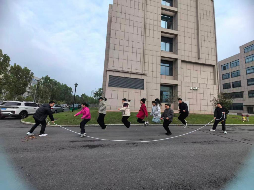 紧接着进行的跳绳项目,将活动氛围推向高潮。随着裁判一声令下,老师们迅速挥动跳绳,双脚轻盈跳跃,绳子在脚下“嗖嗖” 作响,仿佛一道道灵动的闪电。有的老师节奏均匀,动作连贯流畅,一分钟内轻松完成近百次跳跃;有的老师则与同伴相互鼓励,在跳跃中调整呼吸,不断突破自我极限。场外,助威声、加油声此起彼伏,大家纷纷为参赛老师呐喊鼓劲。跳绳不仅考验着老师们的身体协调性与耐力,更让大家在跳跃中释放压力,感受运动带来的快乐与活力。