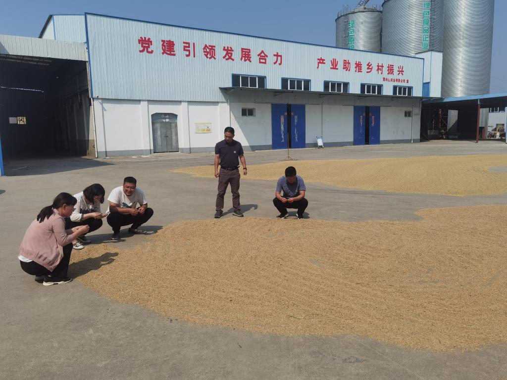 在潢川县富兴山农业发展有限公司和潢川豫川粮业有限公司,科技特派员一行认真查看了水稻的收获情况,了解企业今年水稻的产量、品质及病虫害发生情况,实施水稻绿色防控后病虫害得到较好的控制。
