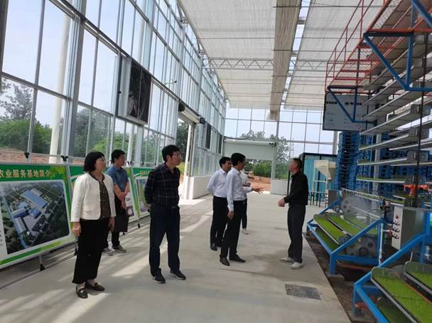 科技特派员一行来到对接服务单位潢川县富兴山农业发展有限公司,企业负责人介绍了企业的基本情况,科技特派员一行参观了公司的现代农业产业园建设情况。现代农业产业园包括实验基地、智能育秧中心、服务中心、农机中心、智控中心的“一基地四中心”。科技特派员实地查看了公司新建智能育秧大棚,科技特派员针对智能育秧大棚的经营模式、产出能力以及秧苗病虫害防治等方面提出了可行性建议。
