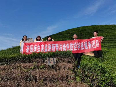 2023年6月7日茶树有害生物绿色防控科技服务团队成员张权老师带领索博文、卢艳艳、孟瑶和朱金锐,共4名学生一起到浉河港镇白庙村开展科技服务。